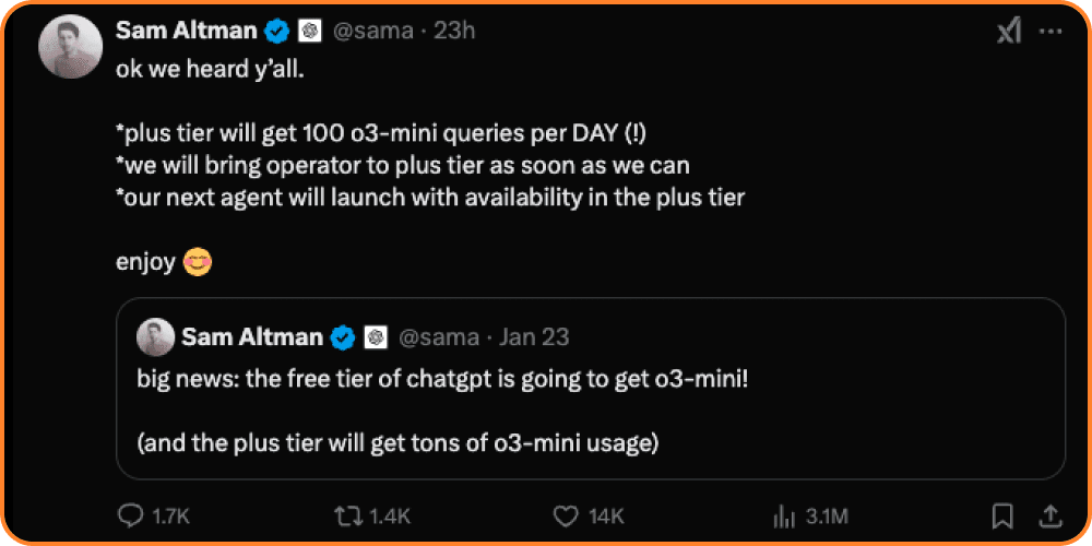 Essa história colocou uma dúzia de batatas, bem quentes, nas mãos de todos. Podemos esperar uma enxurrada de modelos de IA saindo nos próximos dias e semanas. O próprio Sam Altman já anunciou algumas novidades: