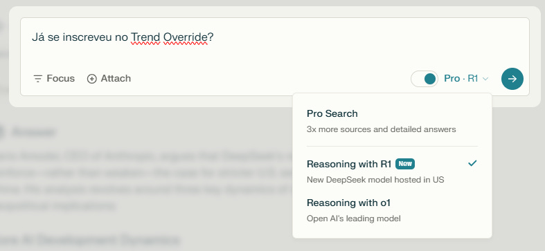 Com o DeepSeek é a mesma coisa. Hoje, por exemplo, podemos usar tranquilamente o modelo R1 por plataformas como Perplexity. O que empresas como essa fazem é rodar o código do modelo dentro do ecossistema delas, sem nenhuma conexão com a China, neste caso particular.